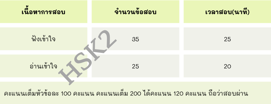 HSK 2 สำหรับผู้สอบที่สามารถใช้ภาษาจีนสื่อสารเรื่องง่าย ๆ ในชีวิตประจำวัน เรียนรู้คำศัพท์มาแล้วอย่างน้อย 300 คำ